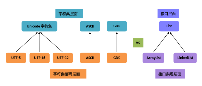 - 同一字符集的不同编码
